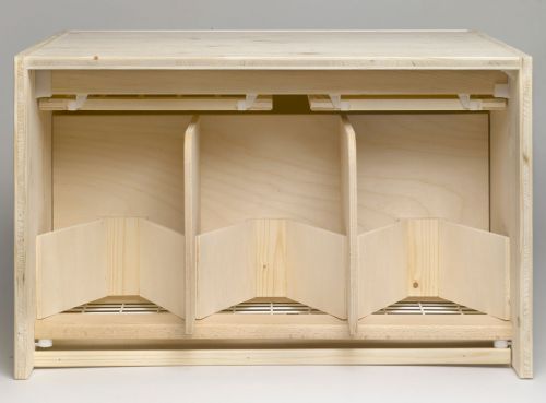 The following illustration shows an insert part for separating widowhood hens. This insert can also be used for 54.2 and 59.2 cm widowhood boxes as well as for perches of 18.2 cm in width. This is the easiest way to locate widowhood hens as they cannot mate in this perch.